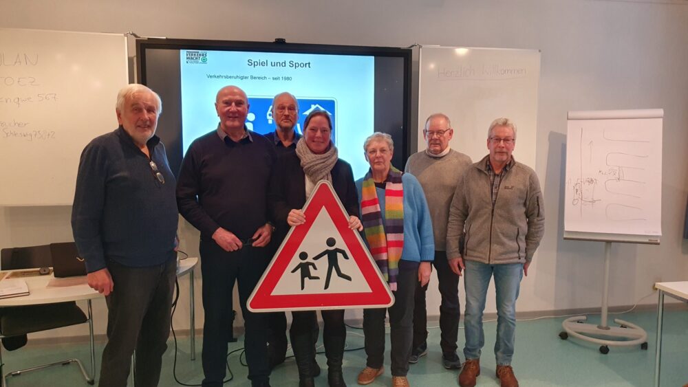 Foto: Stadt Schleswig / Verkehrssicherheitskurs „Alte Hasen – neue Regeln“ – v.l.n.r.: O. Kaufhold (Teilnehmer), R. Greulich (Landesverkehrswacht, Dozent) C. Schmolling (Seniorenbeirat), S. Hein (Kreisverkehrswacht), R. Henningsen, H. Seefeldt und J. Redmann (Teilnehmende)